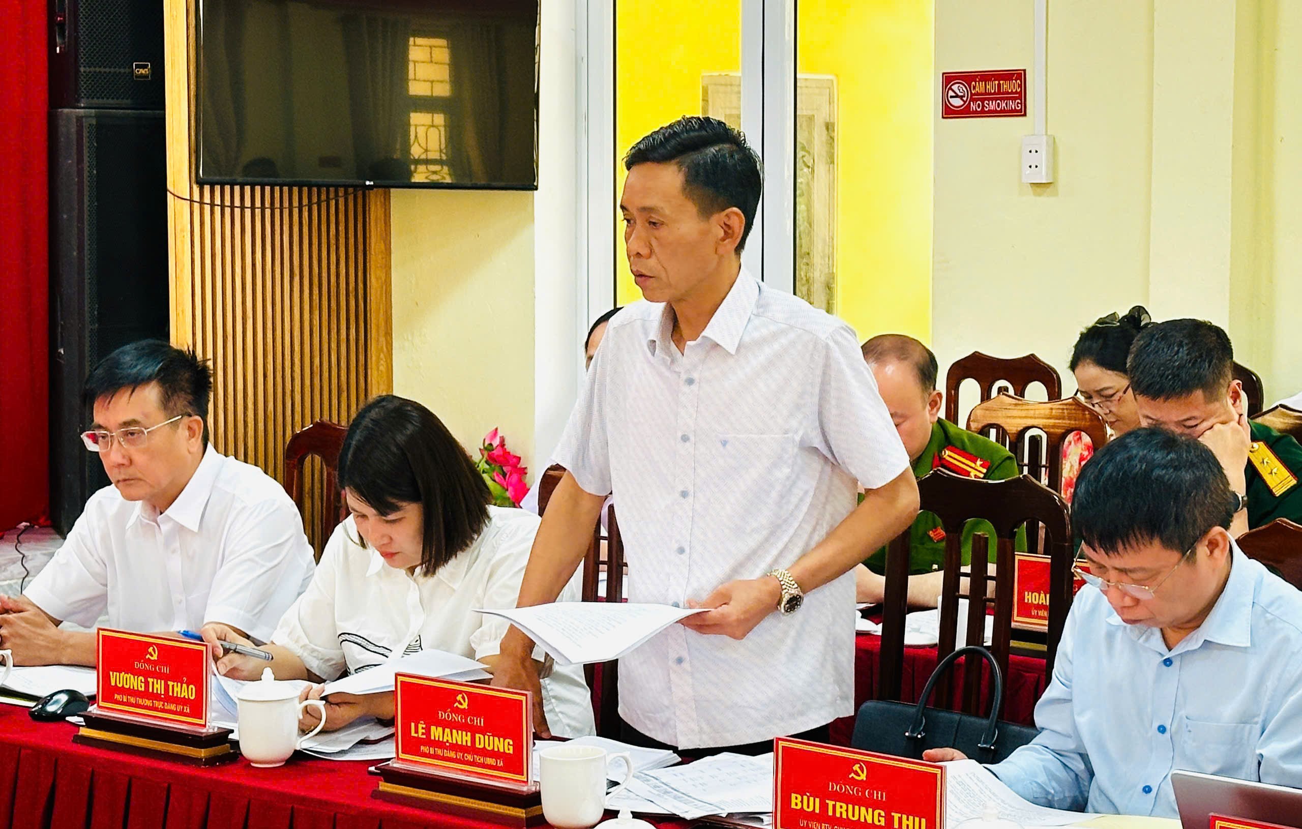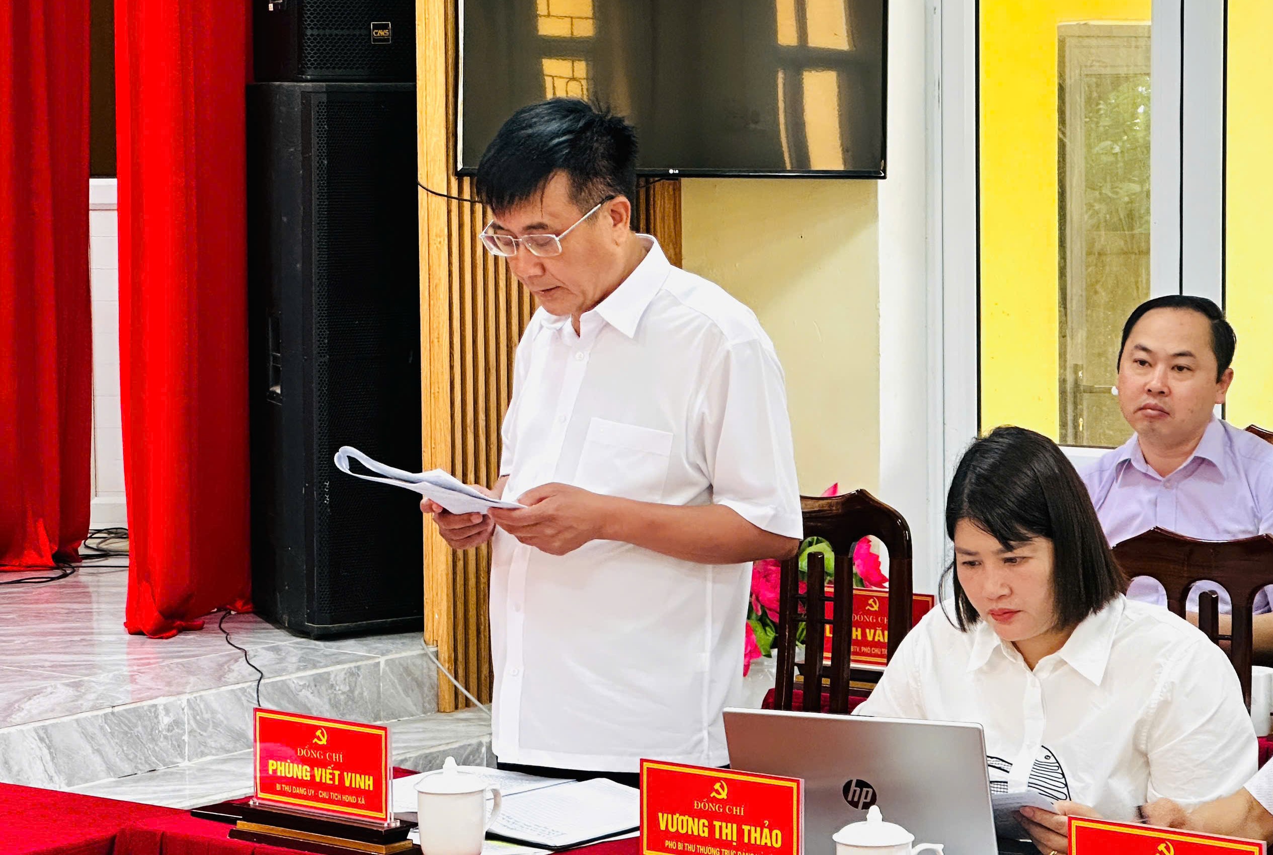 Lãnh đạo xã Thanh Thủy báo cáo tình hình thực hiện các lĩnh vực theo yêu cầu của đoàn kiểm tra, giám sát.