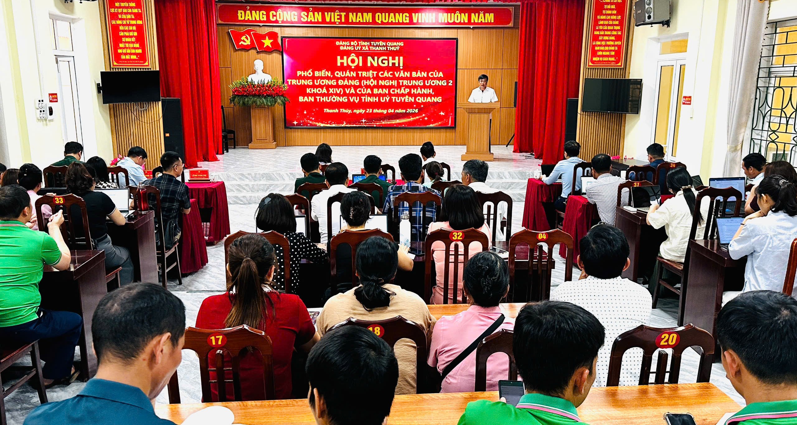Phát biểu tại Hội nghị, đồng chí Bí thư Đảng ủy xã Phùng Viết Vinh yêu cầu các cấp ủy, tổ chức đảng, người đứng đầu cơ quan, đơn vị phát huy vai trò trách nhiệm, trực tiếp lãnh đạo, chỉ đạo việc học tập, quán triệt và triển khai thực hiện; cán bộ, đảng viên nghiêm túc nghiên cứu tài liệu, chủ động vận dụng vào thực tiễn công tác, việc tổ chức học tập, quán triệt đến toàn thể cán bộ, đảng viên, hoàn thành trước ngày 15/5/2026; đồng thời xây dựng chương trình hành động cụ thể nhằm đưa các Nghị quyết, Chỉ thị của Đảng vào cuộc sống, góp phần thực hiện thắng lợi nhiệm vụ phát triển kinh tế - xã hội, đảm bảo quốc phòng – an ninh trên địa bàn./.