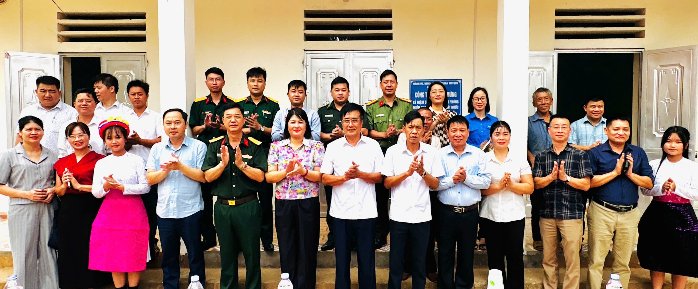 Các đồng chí lãnh đạo xã gắn biển khánh thành công trình