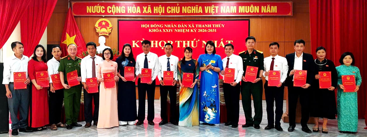 Tại kỳ họp, Ủy ban bầu cử xã đã báo cáo kết quả cuộc bầu cử đại biểu HĐND xã nhiệm kỳ 2026-2031 và xác nhận tư cách đại biểu. Theo đó, Cuộc bầu cử trên địa bàn xã Thanh thủy diễn ra dân chủ, đúng luật, không có đơn vị phải bầu cử lại hoặc bầu cử thêm. Xã đã bầu đủ 16 đại biểu HĐND đảm bảo cơ cấu, thành phần theo quy định. Các đại biểu trúng cử có phẩm chất chính trị, năng lực và uy tín, đại diện cho ý chí, nguyện vọng của Nhân dân. Trên cơ sở đó, HĐND xã Thanh Thủy đã thông qua Nghị quyết xác nhận tư cách đại biểu HĐND xã nhiệm kỳ mới và tổ chức trao giấy chứng nhận cho 16 đại biểu, thể hiện sự ghi nhận, tin tưởng của cử tri và Nhân dân.