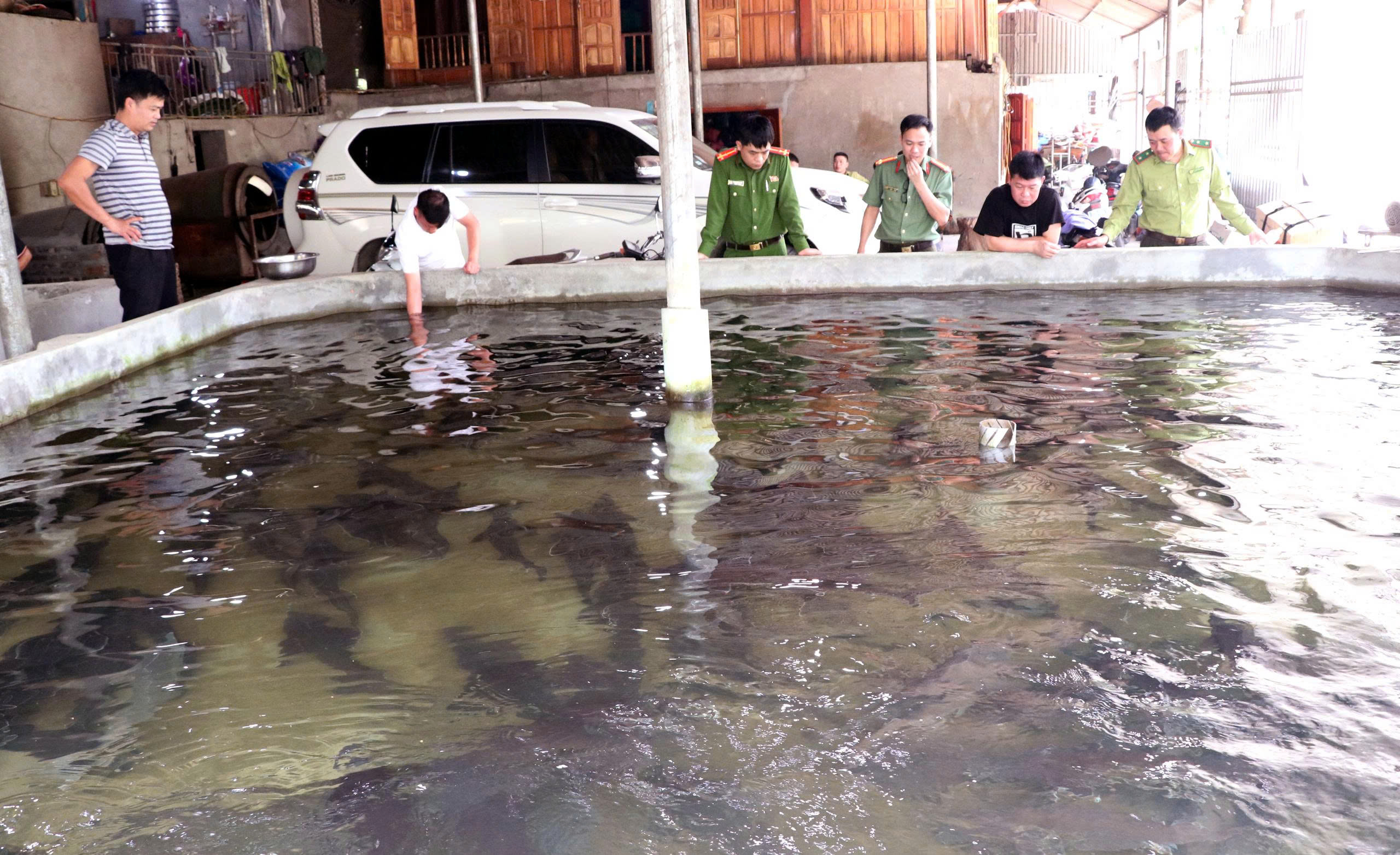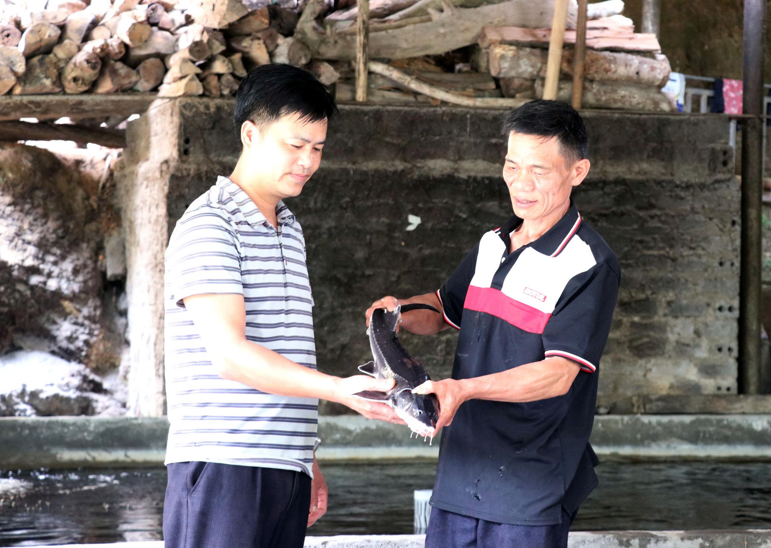 Mô hình cá tầm của ông Bàn Văn Đằng được nhiều người quan tâm tới tham quan học tập và mua con giống.