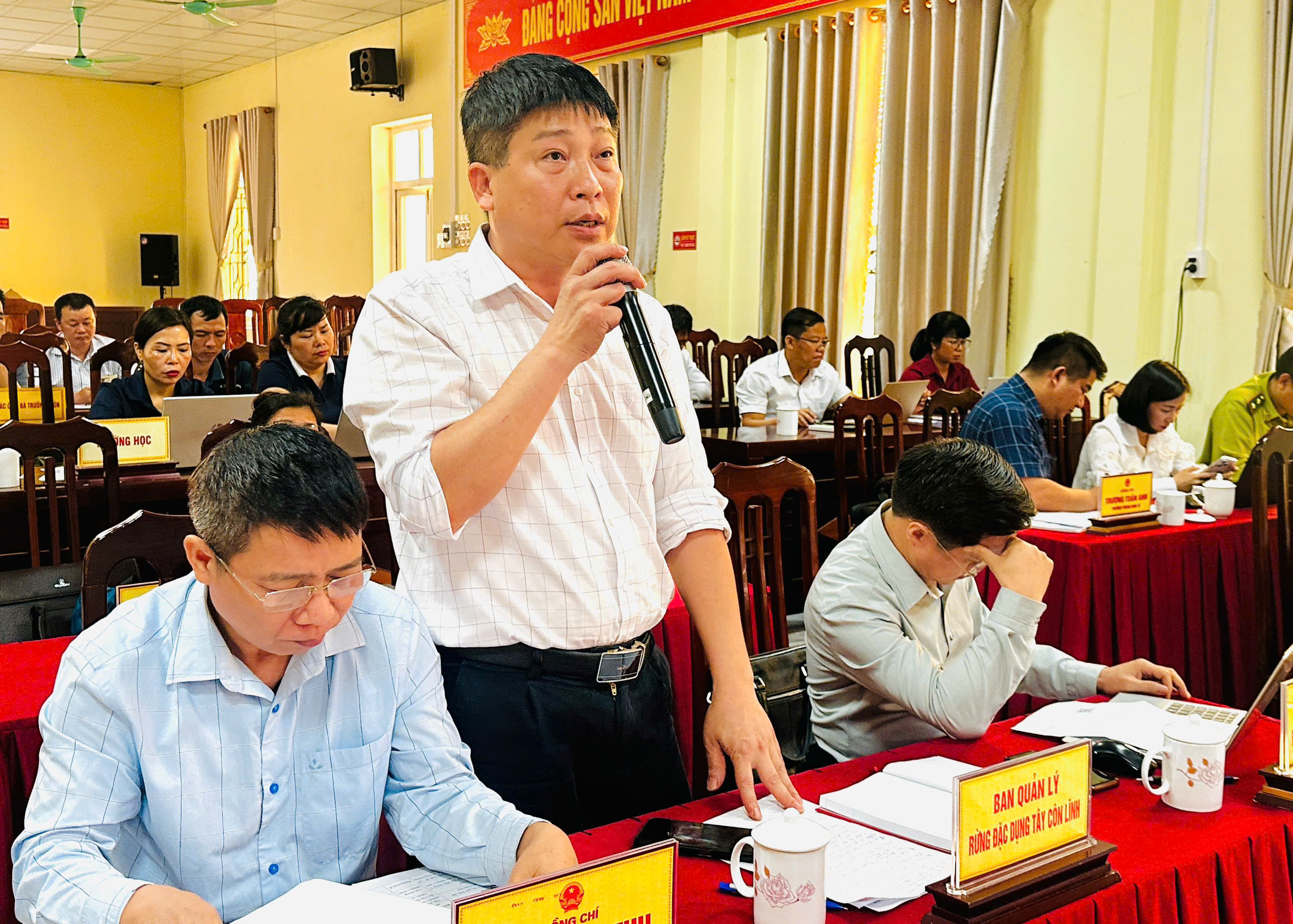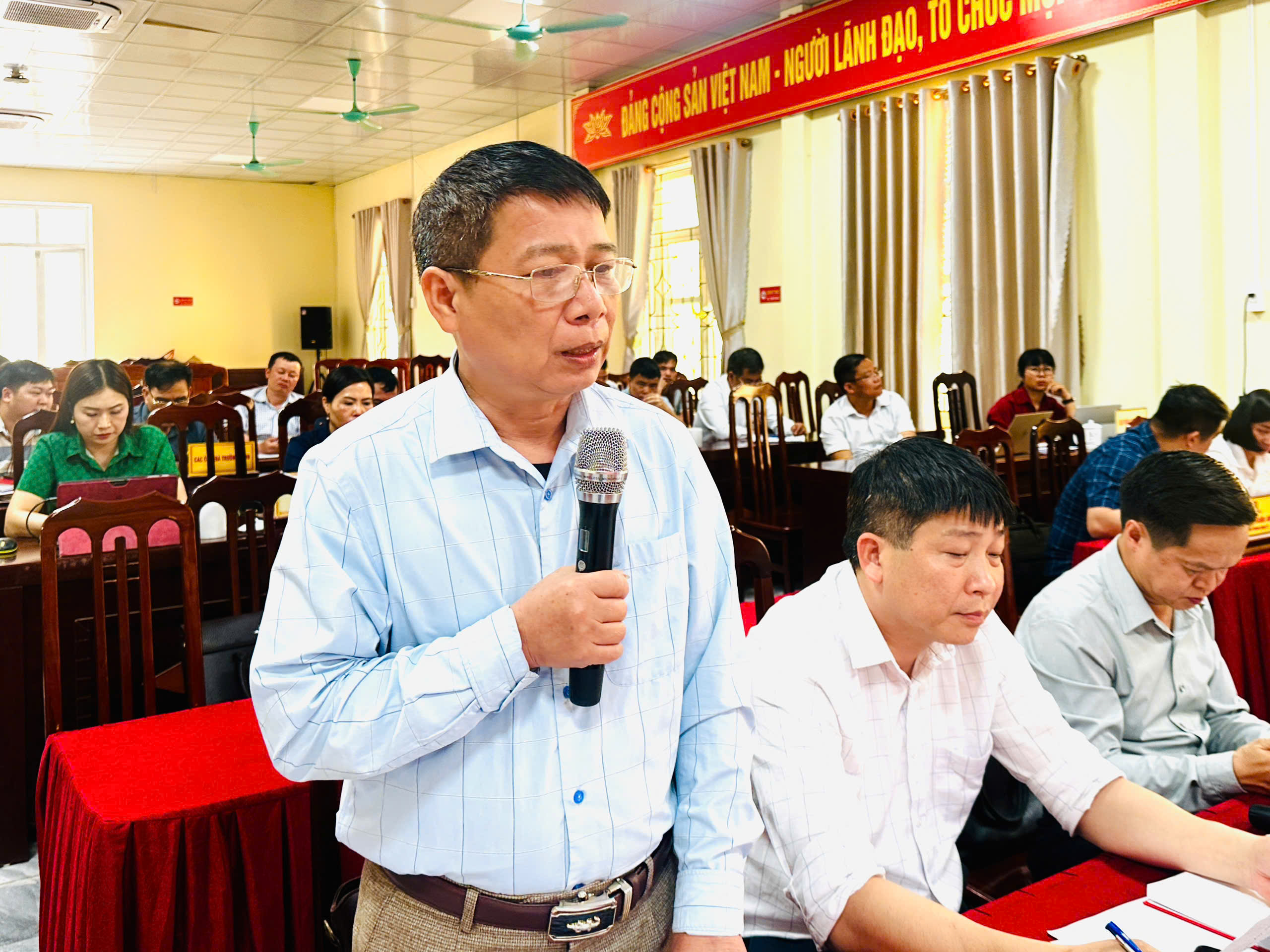 Đồng chí Bùi Trung Thu UVBTV - Chủ tịch Ủy ban MTTQ xã phát biểu tại phiên họp
