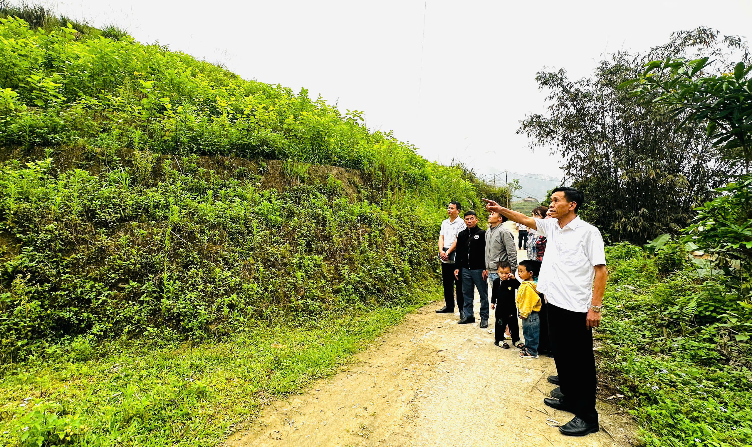 Chủ tịch UBND xã cùng đoàn công tác đi kiểm tra mô hình trồng câu dâu tằm trên địa bàn thôn
