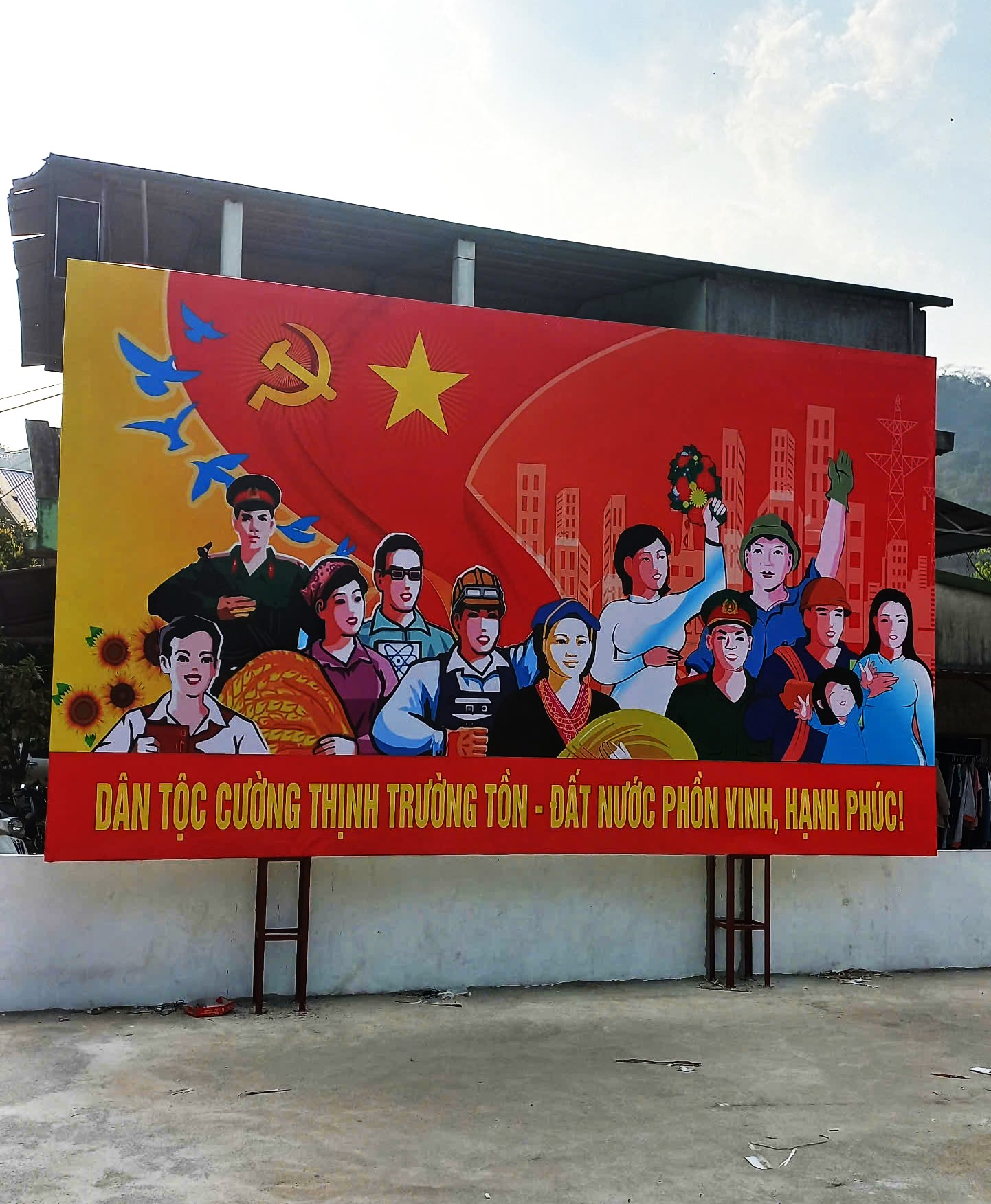 Cổng các thôn đươc treo băng zôn, khẩu hiệu tuyên truyền