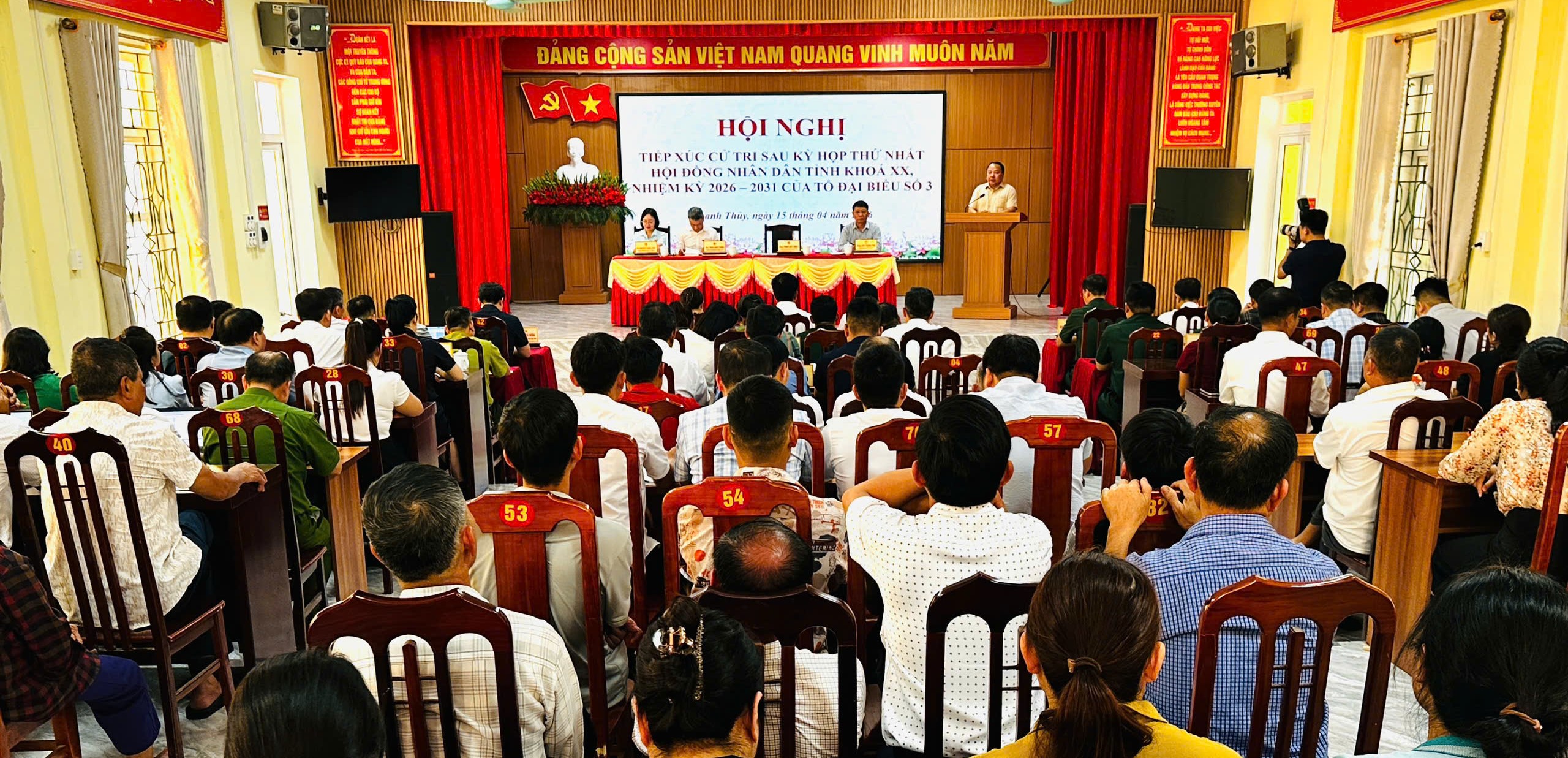Trong chương trình tiếp xúc cử tri tại xã Thanh Thuỷ, Tổ đại biểu HĐND tỉnh thông báo nhanh kết quả cuộc bầu cử ĐBQH khóa XVI và đại biểu HĐND các cấp nhiệm kỳ 2026 – 2031; những kết quả nổi bật của Kỳ họp thứ I, HĐND tỉnh khóa XX diễn ra ngày 28/3 vừa qua; Chủ tịch UBND tỉnh Phan Huy Ngọc cũng thông tin nhanh tình hình phát triển kinh tế - xã hội quý I/2026 của tỉnh đến các bậc cử tri.