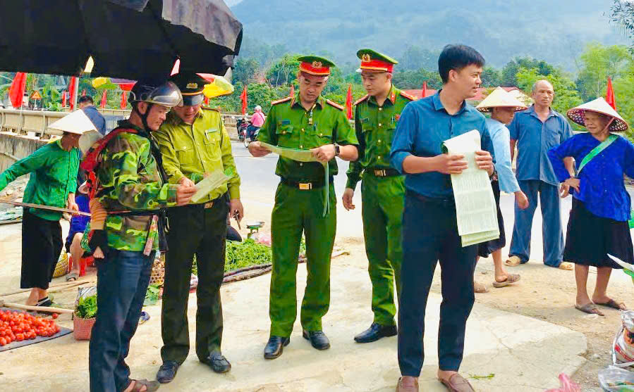 Tại buổi tuyên truyền, lực lượng chức năng đã sử dụng hệ thống loa phát thanh lưu động để truyền tải các nội dung về công tác bảo vệ rừng, phòng cháy, chữa cháy rừng bằng cả tiếng phổ thông và tiếng đồng bào dân tộc Dao, giúp người dân dễ hiểu, dễ tiếp cận thông tin. Đồng thời, hơn 200 tờ rơi tuyên truyền cũng đã được phát trực tiếp đến người dân, tiểu thương tham gia họp chợ. Nội dung tuyên truyền tập trung vào các quy định của pháp luật về bảo vệ rừng, cảnh báo nguy cơ cháy rừng trong mùa hanh khô, hướng dẫn người dân các biện pháp phòng ngừa cháy rừng, cũng như cách xử lý khi phát hiện cháy xảy ra.