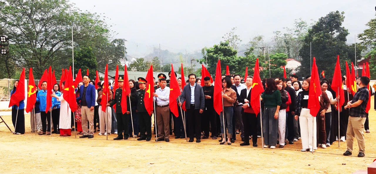 Các đồng chí lãnh đạo xã và cán bộ các ban, ngành đoàn thể, các lực lượng tham gia buổi tuyên truyền