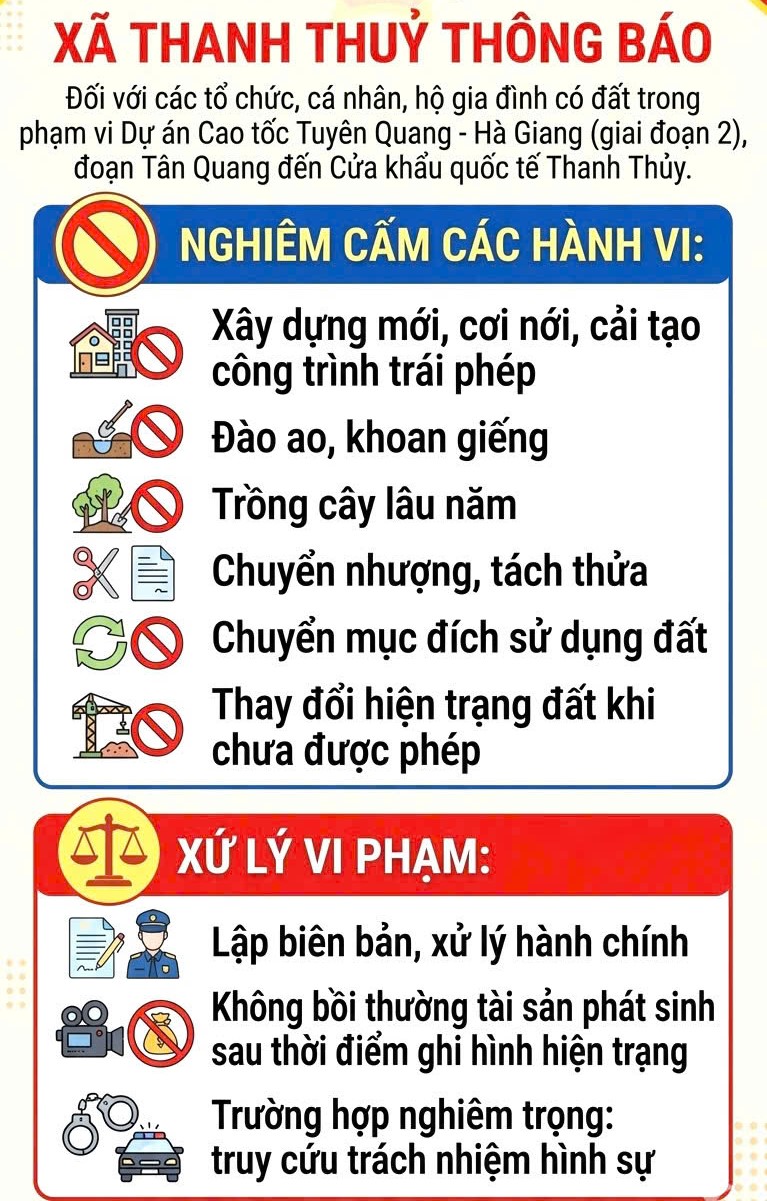 Thông báo về việc tăng cường quản lý đất đai trong phạm vi Dự án Cao tốc Tuyên Quang – Hà Giang (giai đoạn 2).