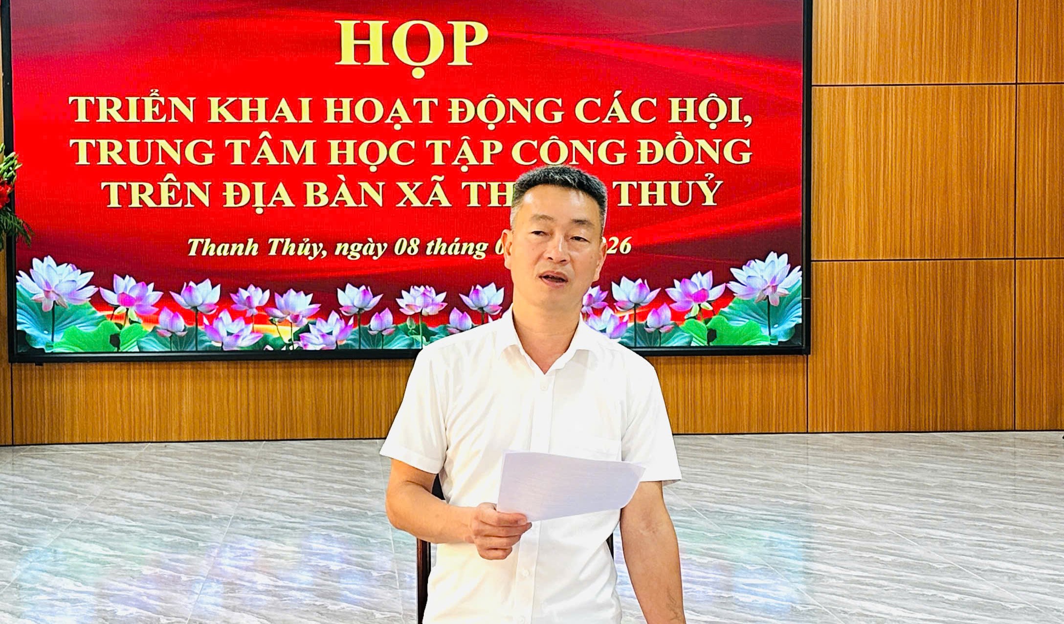 Nhằm đánh giá đúng thực trạng, đề ra giải pháp phù hợp, góp phần nâng cao hiệu quả hoạt động của các hội và Trung tâm học tập cộng đồng. Chiều ngày 08/4/2026, UBND xã Thanh Thuỷ tổ chức cuộc họp triển khai hoạt động của các Hội và Trung tâm học tập cộng đồng trên địa bàn xã. Tham dự cuộc họp có đồng chí Bùi Trung Thu - Uỷ viên BTV Đảng ủy, Chủ tịch Uỷ ban MTTQ xã, lãnh đạo phòng Văn hoá - Xã hội cùng các hội gồm: Hội Khuyến học, Hội Chữ thập đỏ, Hội Nạn nhân chất độc da cam/dioxin, Hội Người cao tuổi, Hội Cựu giáo chức, Hội Đông y; Ban quản lý Trung tâm học tập cộng đồng xã. Đồng chí Phan Ngọc Thắng - Uỷ viên BCH Đảng ủy, Phó Chủ tịch UBND xã chủ trì cuộc họp