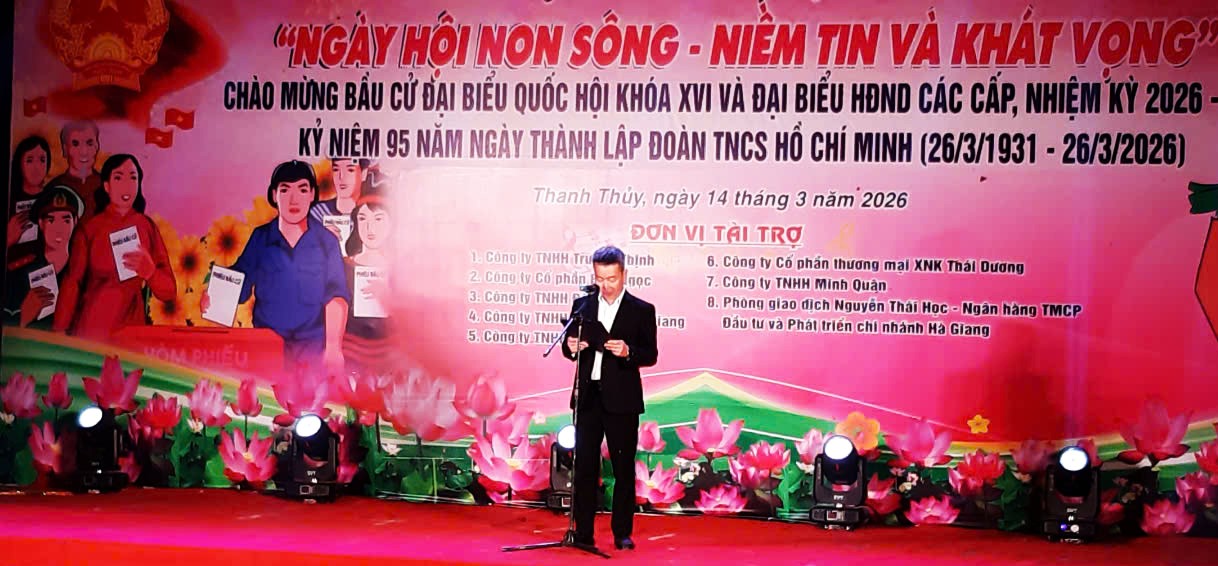 Tối 14/3/2026 Đảng ủy, HĐND, UBND, UBMTTQ VN xã Thanh Thủy tổ chức chương trình nghệ thuật “Ngày hội non song – Niềm tin và khát vọng”. Chào mừng cuộc bầu cử Đại biểu Quốc hội khoá XVI và Đại biểu HĐND các cấp nhiệm kỳ 2026 – 2031 và Kỷ niệm 95 ngày thành lập Đoàn TNCS Hồ Chí Minh 26/3/1931 – 26/3/2026. Tham dự chương trình có các đồng chí Thường trực Đảng ủy, HĐND, UBND, UBMTTQ VN; lãnh đạo các cơ quan, đơn vị, ban, ngành, đoàn thể của xã; cán bộ, đoàn viên thanh niên và đông đảo nhân dân trên địa bàn.