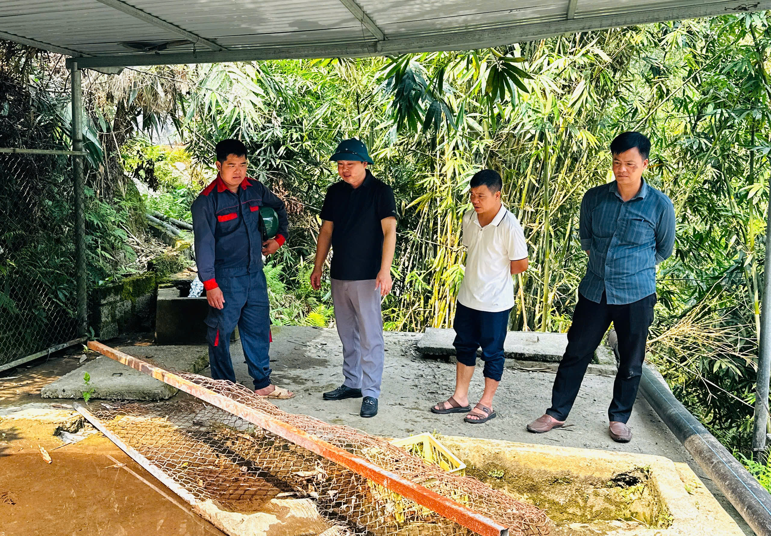 Lãnh đạo xã kiểm tra dự án cấp nước sinh hoạt